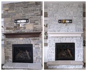 One of the most popular updates—turning a dark, dominant fireplace into a bright, modern focal point.